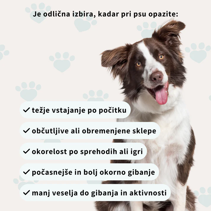 Priboljški obogateni so s hialuronsko kislino tako, da vsak žvečljiv priboljšek zagotavlja hidracijo sklepnih tkiv, kar povečuje gibljivost in blaženje za bolj gladko gibanje. Visokokakovostne naravne sestavine, vključno z glukozaminom, MSM, hondroitin sulfatom, kolagenom in esencialnimi vitamini, skupaj spodbujajo gibljivost sklepov.